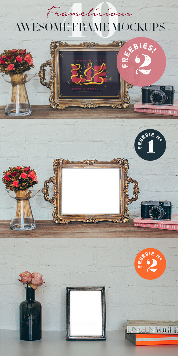 This freebie contains 2 stunning frame mockups. What can you use these mockups for? Great question! You can use them to quickly and easily add a frame for your artworks like prints, posters, photos, art and more. This is a very handy when it comes to presenting your work to clients.